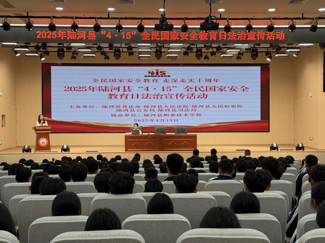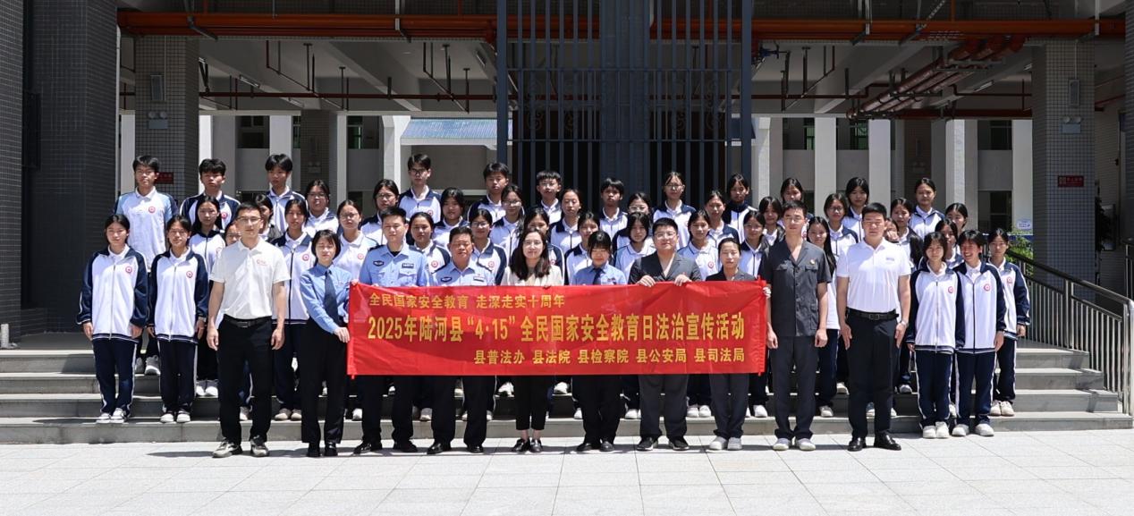 2025年4月15日,在第十个全民国家安全教育日到来之际,陆河县普法办、司法局联合法院、检察院、公安局走进陆河县职业技术学校,以“全民国家安全教育 走深走实十周年”为主题,举办国家安全教育法治宣传活动。通过设置宣传展板、专题授课、趣味互动、青春倡议等形式,推动国家安全意识深入人心,有效提升了师生的国家安全意识和法治素养,进一步筑牢了校园安全防线,近500名师生参与。