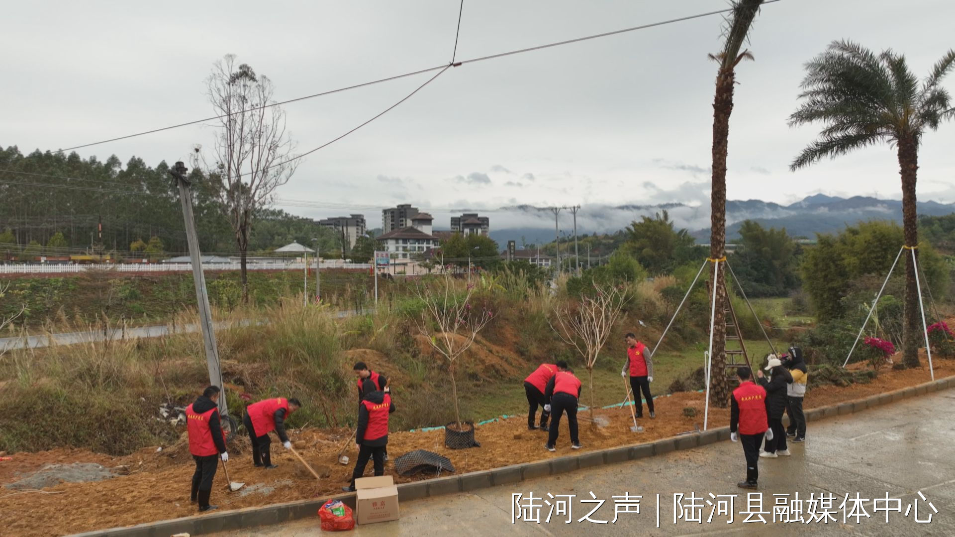 1月28日,上护镇开展植树备耕活动,党员干部率先垂范,“大干一场”绿化家园,推进绿美陆河生态建设。