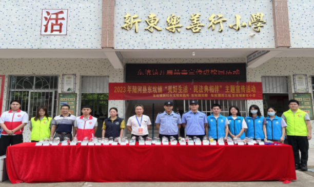 为深入推进青少年毒品预防教育工作及普法教育工作,5月18日上午,东坑镇政府相关部门联合东坑派出所到新东小学开展“美好生活·民法典相伴”暨禁毒宣传“进校园”活动。