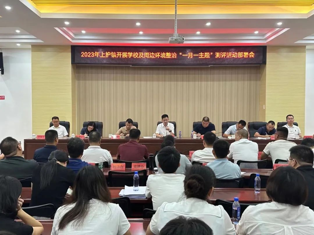 为确保我镇校园及周边环境的安全、有序、稳定,切实保障未成年人身心健康安全,不断巩固文明创建工作成果,9月27日下午,上护镇组织召开2023年学校及周边环境整治“一月一主题”测评活动部署会。
