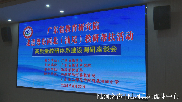 4月22日,2025年广东省教育研究院走进粤东西北(汕尾)教研帮扶活动高质量教研体系建设调研座谈会在我县河田中学举行。省教育研究院党委书记、院长傅湘龙以及深圳教科院、省教研院有关负责同志及专家,市教育局主要领导、分管教研工作领导和市教师发展中心负责人,各县(市、区)教育局主要领导和教师发展中心负责人参加会议。