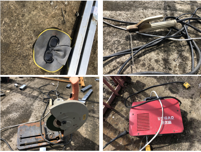 3.焊接和切割有关设备。事故现场放有电焊机1台、电焊条若干、电焊防护面罩1副、切割机1台。(图3)