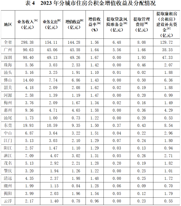 (四)增值收益分配:2023年,提取贷款风险准备金6.48亿元,提取管理费用8.08亿元,提取城市廉租住房(公共租赁住房)建设补充资金129.72亿元。