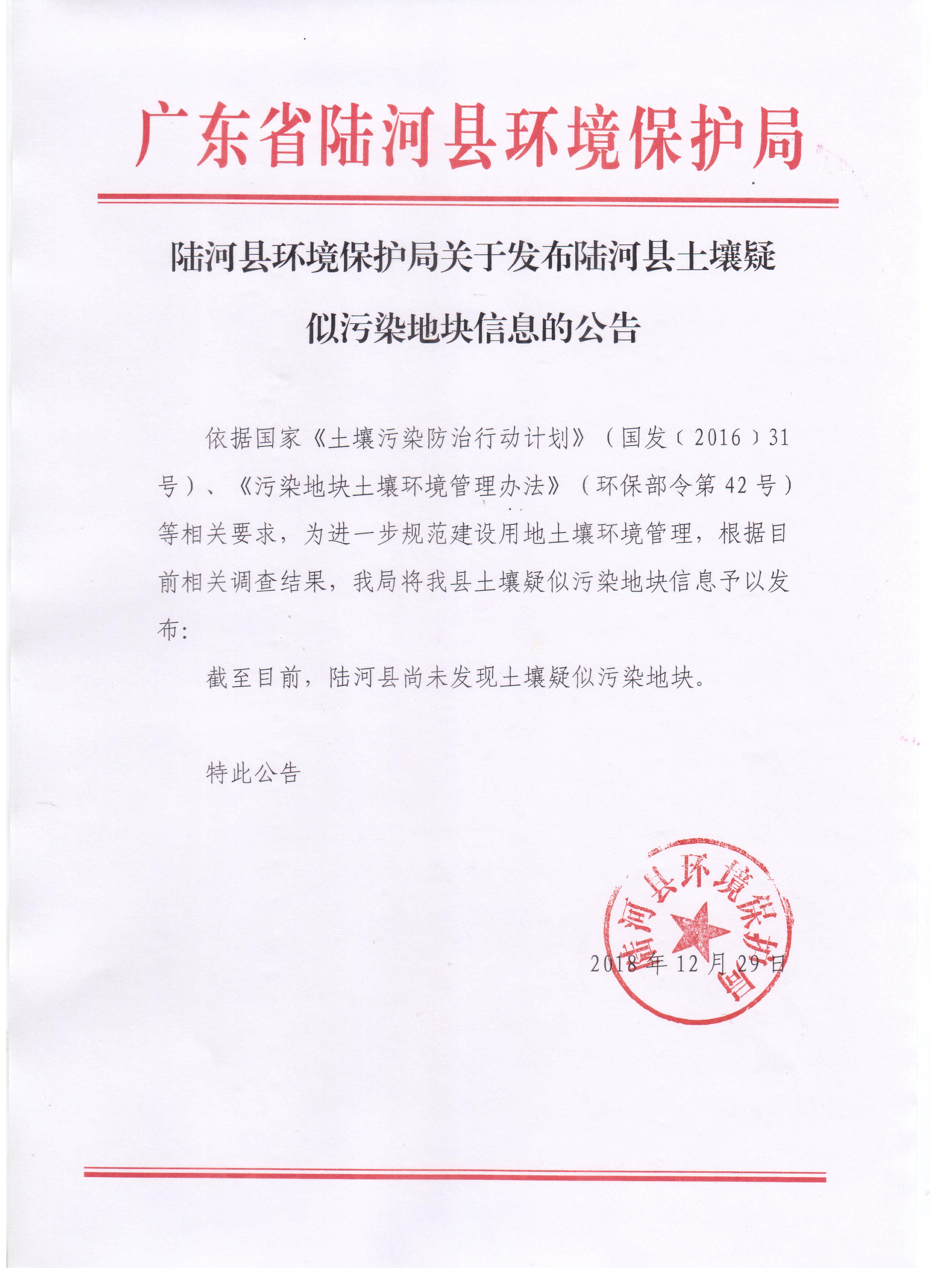 陆河县环境保护局关于发布陆河县土壤疑似污染地块信息的公告
