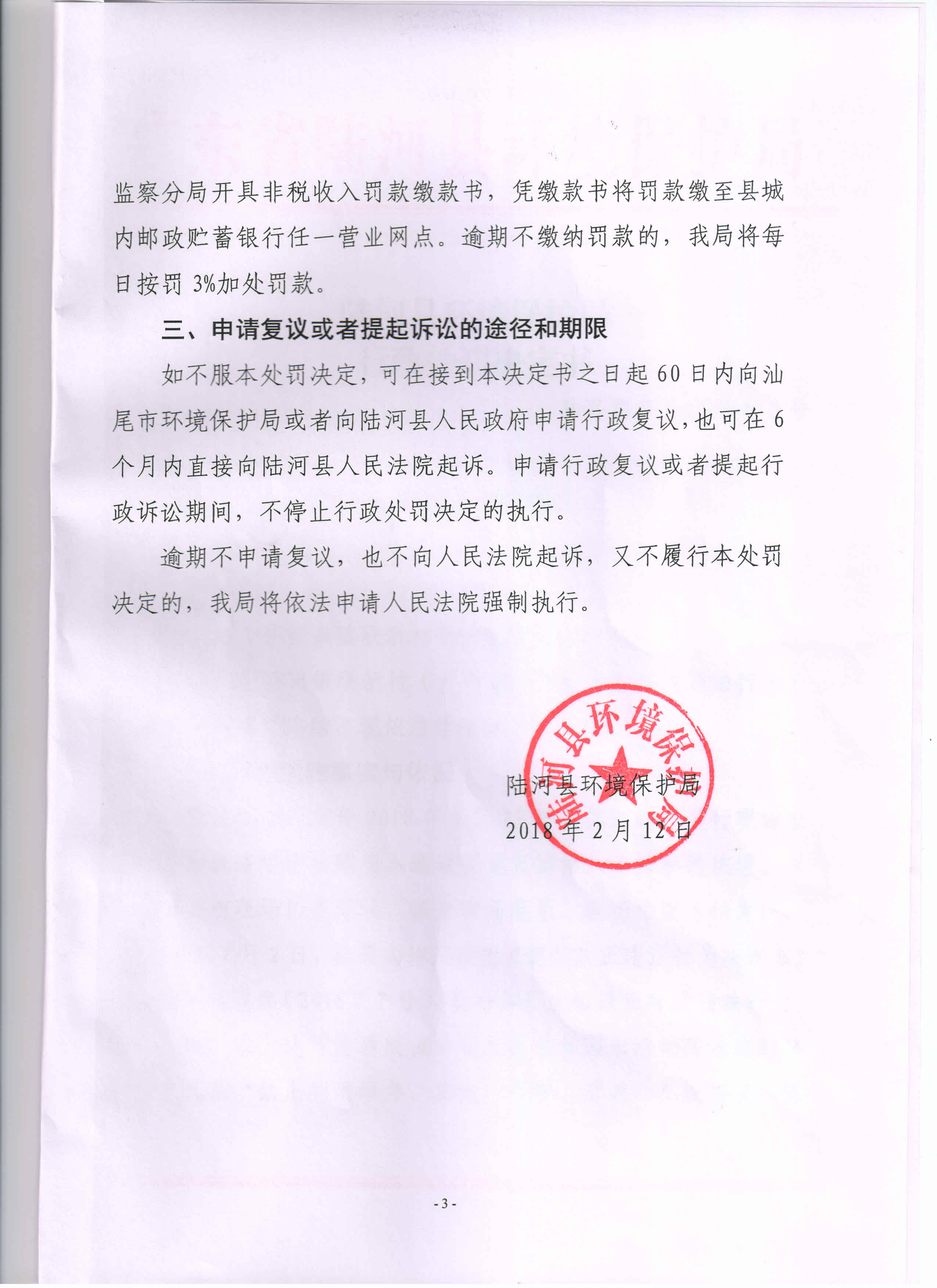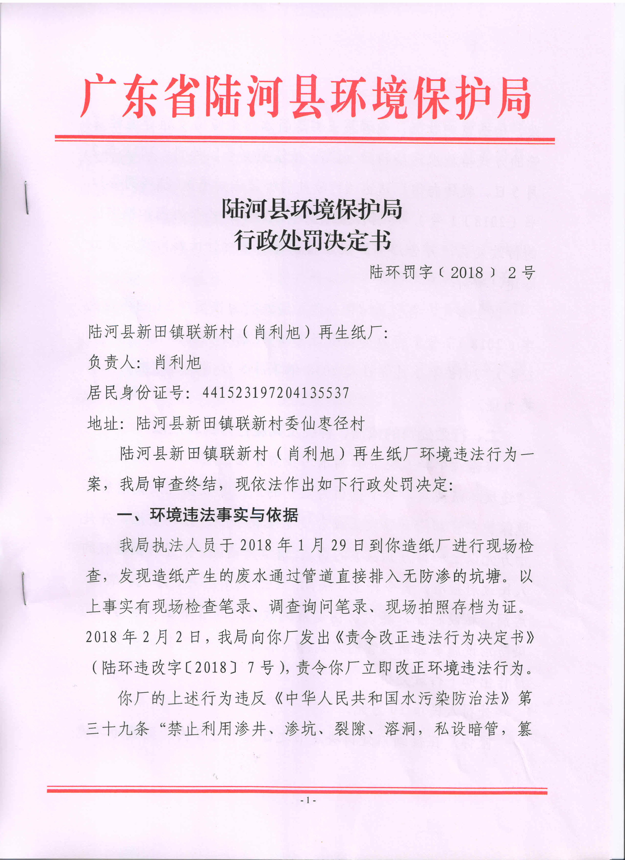 行政处罚决定书(陆河县新田镇联新村(肖利旭)再生纸厂)