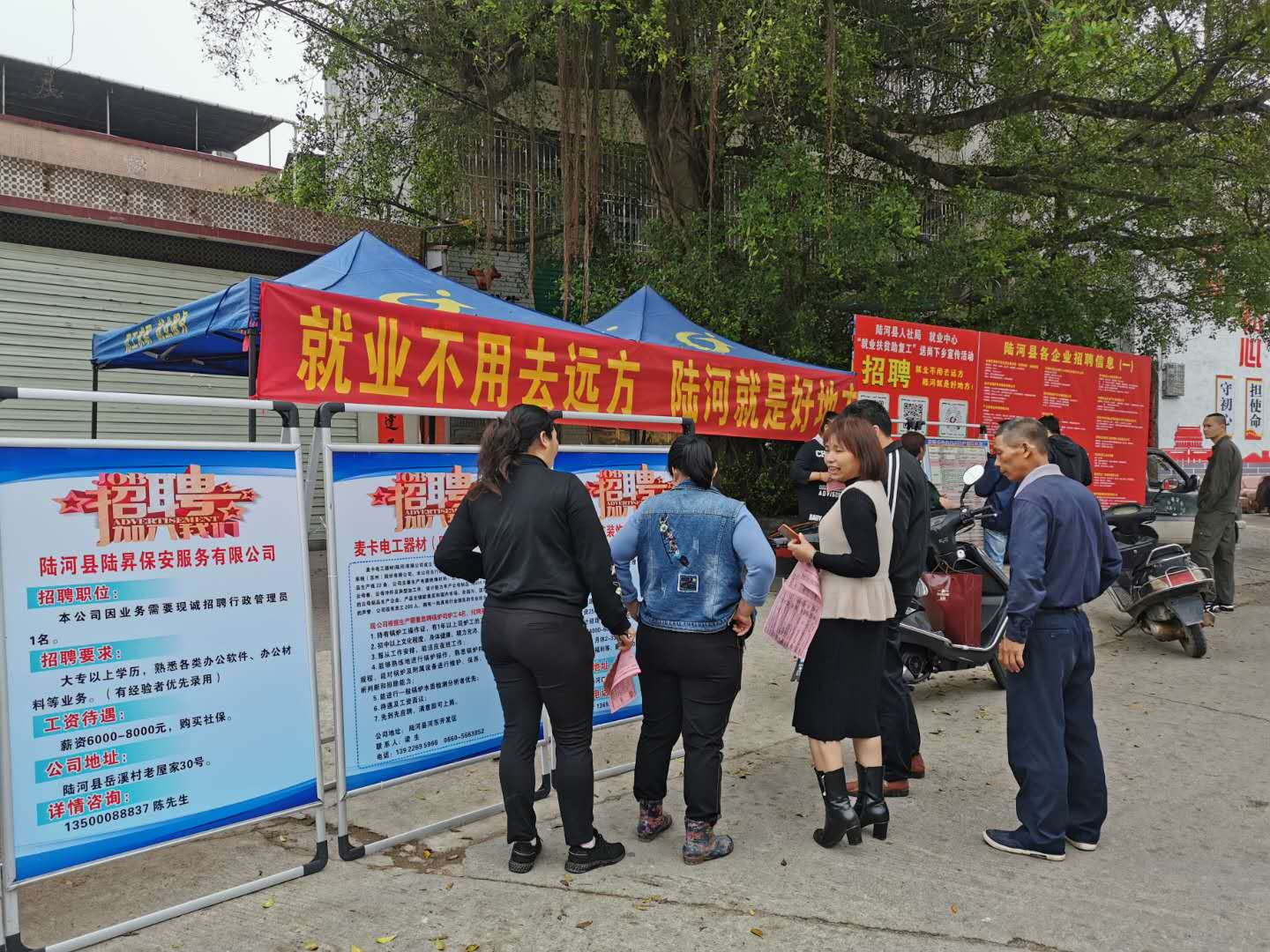 县人社局企业复工复产服务专员为前来询问的群众讲解我市2.0版促进就业九条、用工保障政策7条、就业补贴政策21条等就业用工政策,宣传我县园区企业用工环境、用工缺口、岗位信息及薪酬待遇,发动引导各镇乡村、社区贫困人员和返乡未就业劳动力就地就近就业。参与招聘的企业有陆河比亚迪汽车、陆昇保安、锦艺装饰等10多家企业。