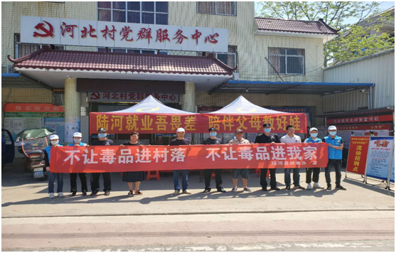 2020年4月28日上午,陆河县人社局借“就业扶贫助复工”流动招聘活动契机,联合县禁毒办、陆河阳光禁毒社工在河田镇河北村委开展了以“不让毒品进村落,不让毒品进我家”为主题的禁毒宣传教育活动。