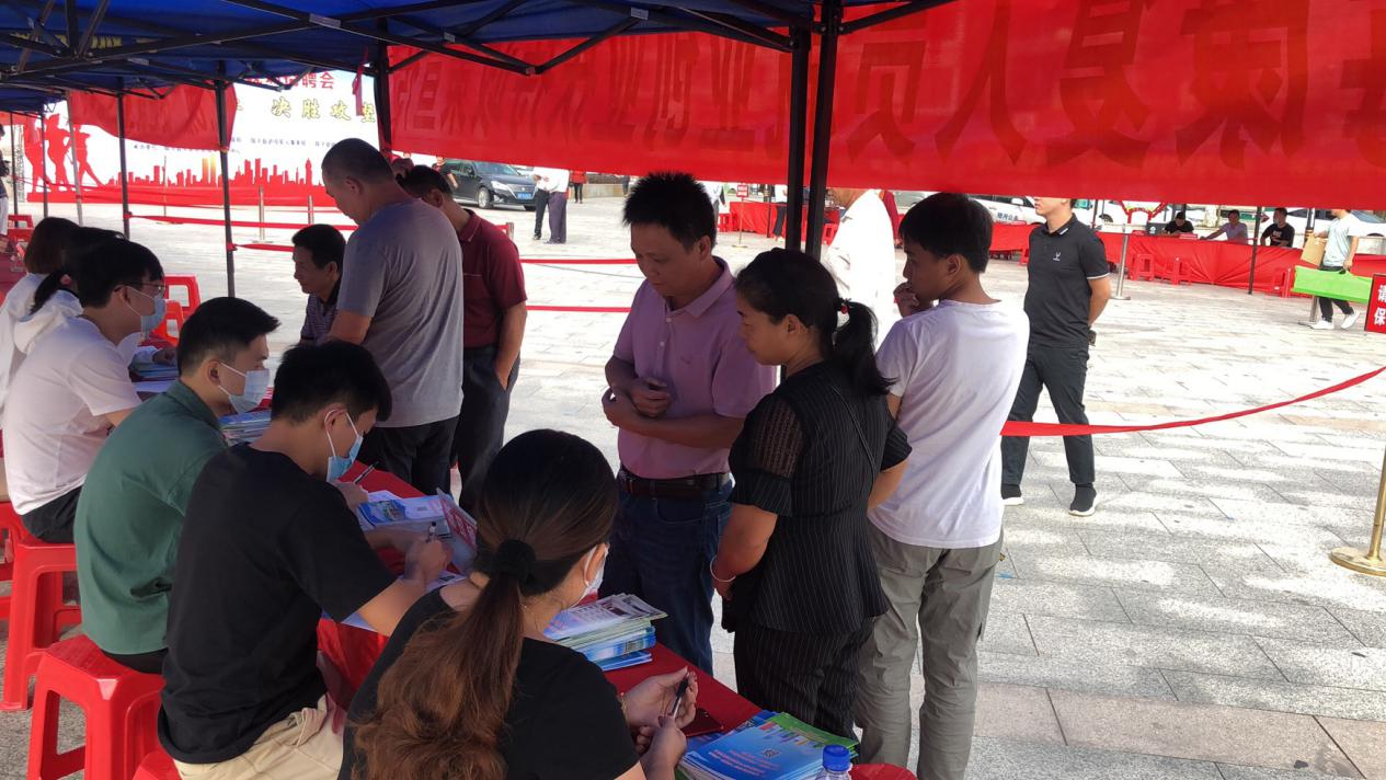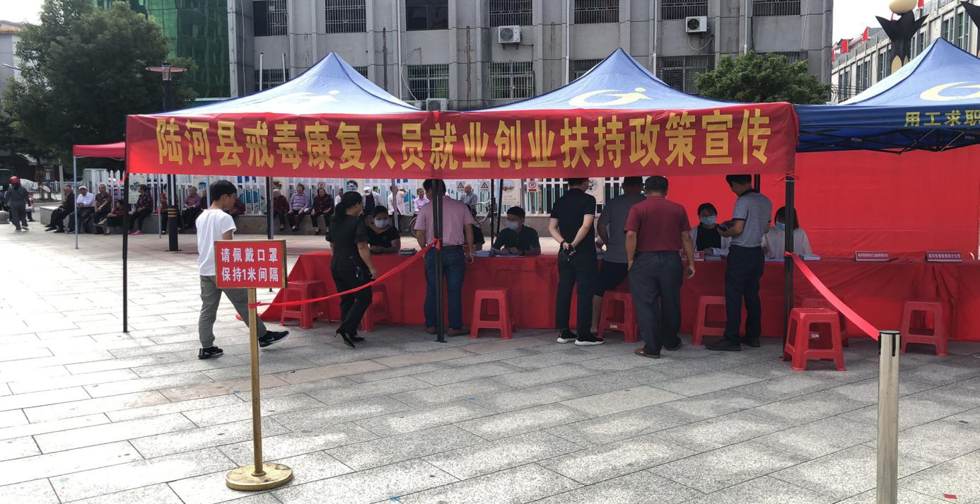 为进一步开展禁毒宣传教育活动,提高群众知毒、防毒、拒毒意识。2020年10月17日至18日县人力资源和社会保障局联合县退役军人事务局、县扶贫开发办公室在陆河县人民广场举办了“陆河县2020年就业扶贫行动日暨退役军人就业服务现场招聘会”。借助退役军人、高校毕业生与其他劳动力集中求职的有利时机,在招聘现场开展禁毒宣传活动。