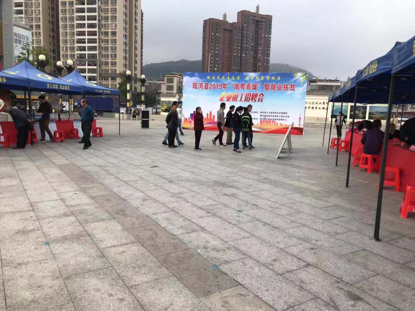 陆河县就业中心在县人民广场举办2019年“南粤春暖”暨就业扶贫企业用工招聘会活动。活动有汕尾和陆河60多个企业提供岗位,200多人求职,达成就业意向100多人,成功招聘60多人。