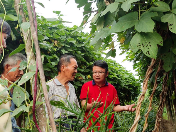 仲恺农业工程学院团队负责人在指导粉葛种植户。广东省教育厅供图