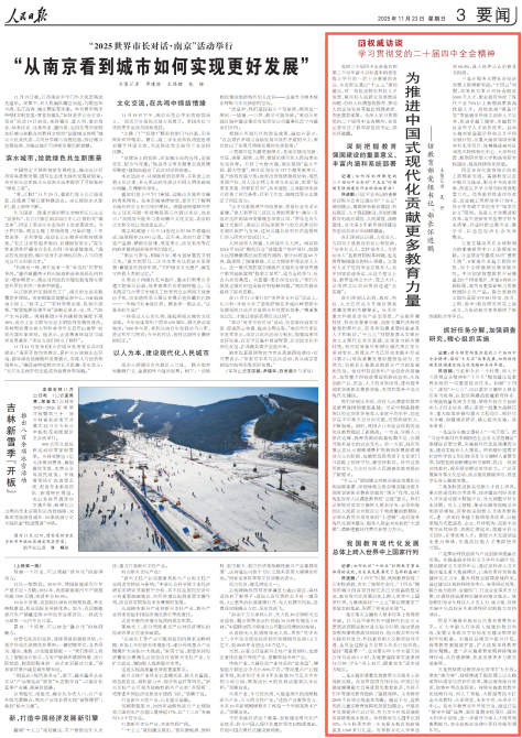 11月23日,《人民日报》“权威访谈·学习贯彻党的二十届四中全会精神”栏目采访教育部党组书记、部长怀进鹏。跟小编一起来看——