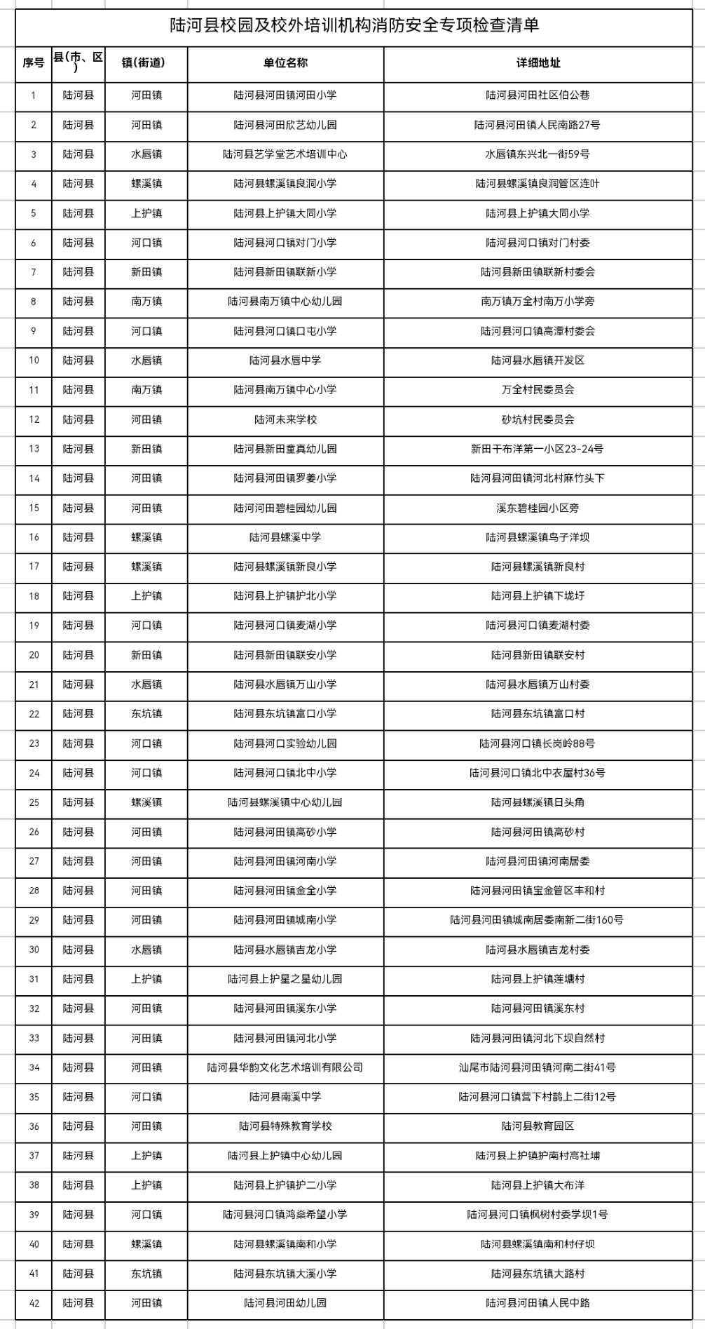 陆河县关于开展校园及校外培训机构消防安全专项检查前的公示
