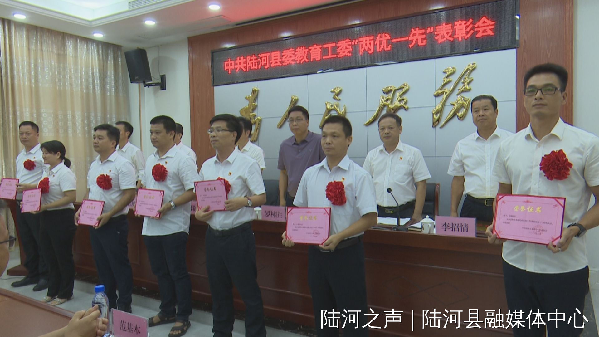 6月30日上午,县委教育工委召开“两优一先”表彰大会,表彰了一批为全县教育事业做出突出贡献的优秀共产党员、优秀党务工作者和先进基层党组织。同时,会议还对评选出来的县教育系统第一批党建示范学校颁发了奖牌。