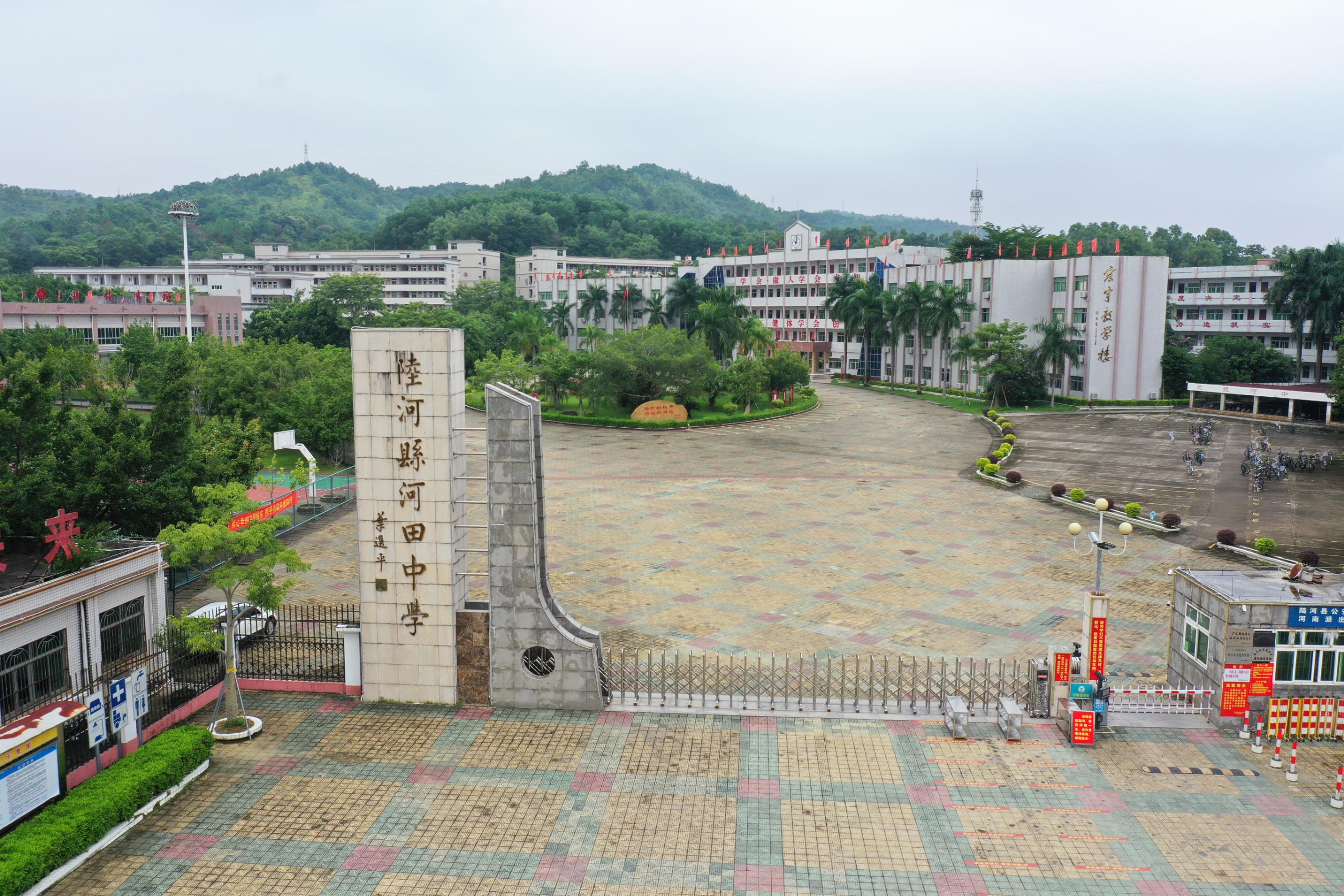 陆河县河田中学地处粤东海陆丰革命老区,是广东省一级学校、广东省国家级示范性普通高中。学校创办于1934年,富有光荣的革命传统,民族危难时师生积极宣传抗日;解放战争时期,是东江南岸最先为人民政权接管的中学,闻名广东的江南青年公学校本部初址就设在河田中学,曾为解放战争和新中国建设输送了大批革命干部和人才。1956年,学校迁至河田镇西北(现为河城中学校址),改名为陆丰县河田中学,1958年增设高中班,成为规模较大的完全中学。1988年3月陆河设县,归属陆河。1999年9月,停办初中班,成为高级中学。为适应迅猛发展的教育形势,学校于2002年9月迁至县城南郊咸塘现校址。