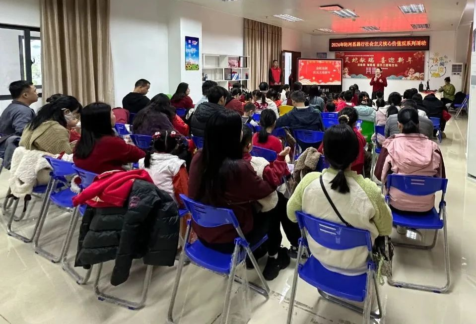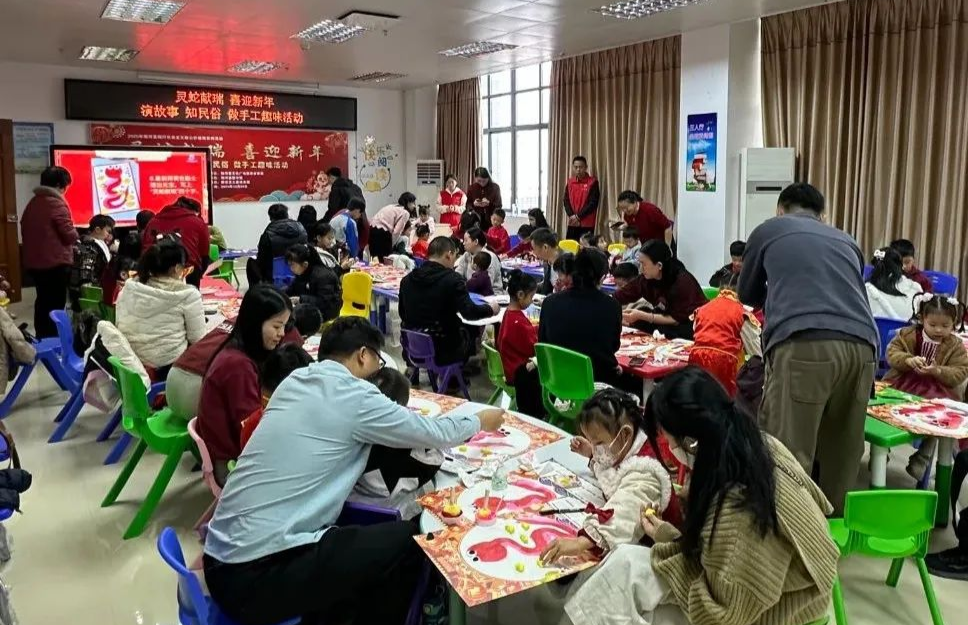 为践行社会主义核心价值观,喜迎新的一年,并给孩子们营造一个欢乐、祥和的节日氛围,让其在活动中感受中华优秀传统文化所承载的精神内涵,进而增进亲子间融洽的亲情关系,培育和谐的家庭风尚,2024年12月29日上午,由陆河县文化广电旅游体育局主办,陆河县图书馆承办,胖豆豆绘本馆协办的“灵蛇献瑞 喜迎新年——演故事 知民俗 做手工”趣味活动在图书馆活动室顺利开展。本次活动吸引了四十余组家庭参与,共同开启这场充满年味且富有教育意义的亲子活动。