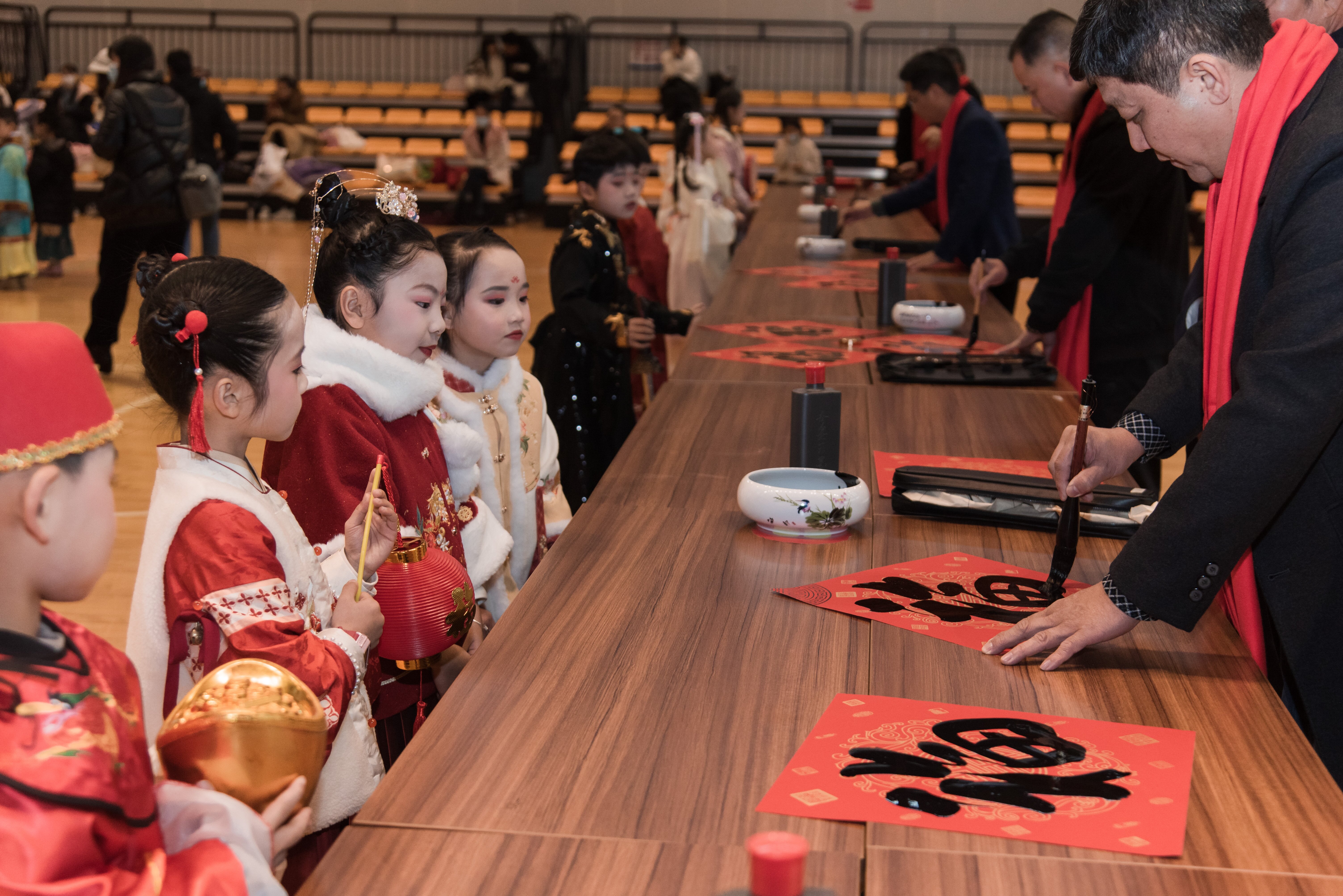 活动现场,翰墨飘香,红色纸张悉数铺开,书法家们个个凝神聚气、挥毫泼墨,将祝福与心意注入在一笔一画中,一个个寓意吉祥的“福”字、一幅幅饱含祝福的春联跃然于纸上,浓浓的年味扑面而来。