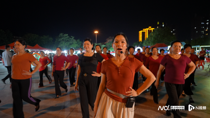 姚静在广场上教市民群众跳舞