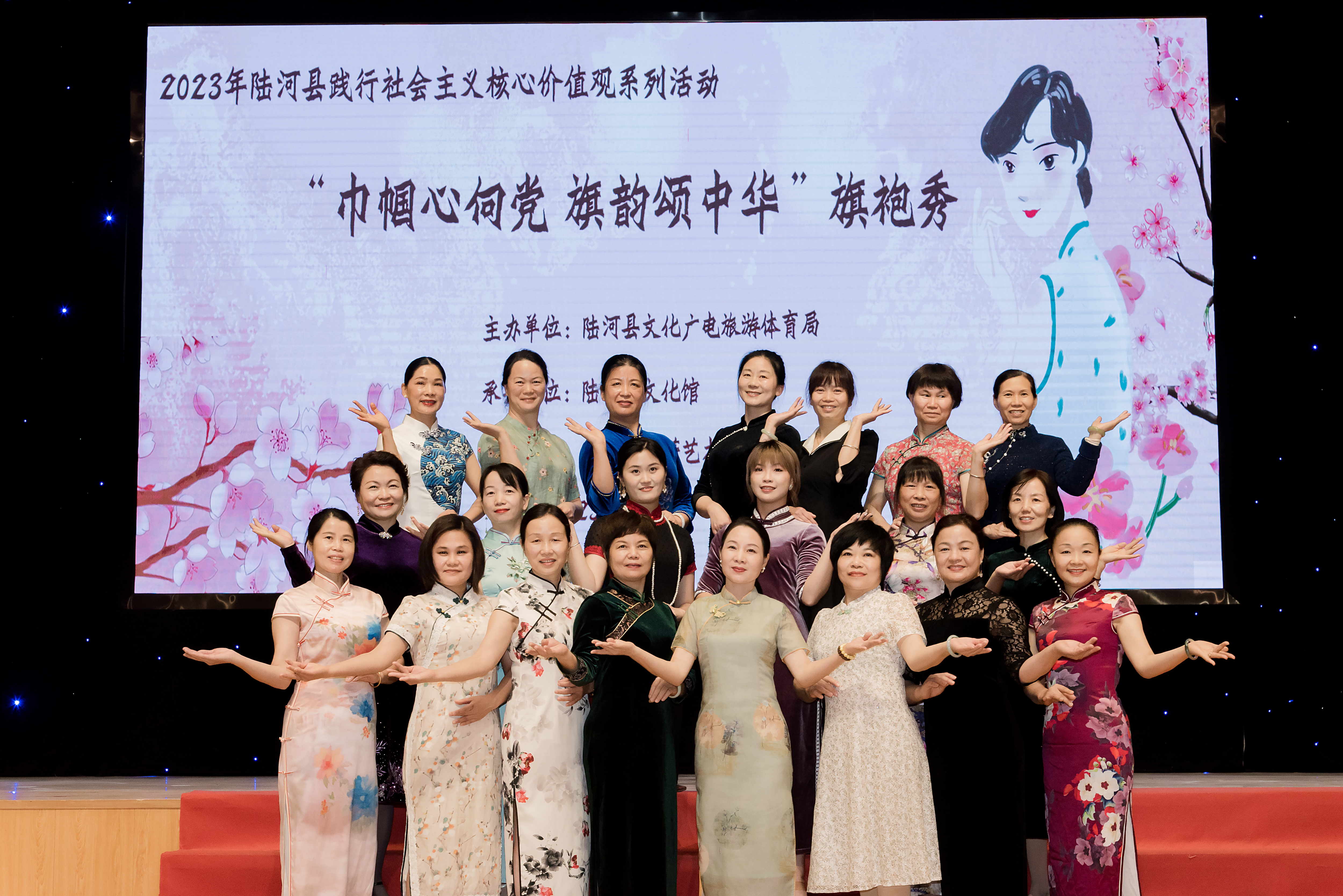 旗袍,承载着文明,追随着时代,是展示中国女性端庄、典雅的文化载体。为丰富广大女性的精神文化生活,弘扬传统文化,展现当代女性的自信与风采。3月19日,由陆河县文化广电旅游体育局主办、陆河县文化馆承办的“巾帼心向党 旗韵颂中华 ”旗袍秀活动在陆河县文体综合馆举行。