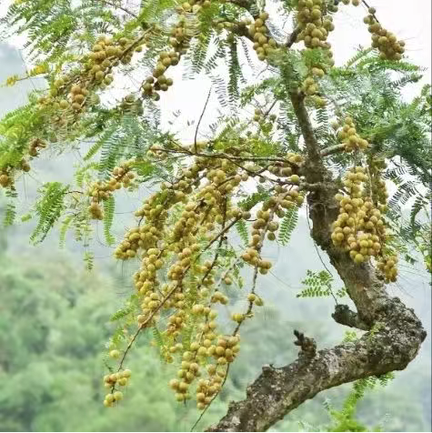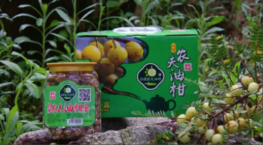 油柑具有药食同源的特性,药用价值高、可口甘甜,是联合国卫生组织推荐的三种保健植物之一。“一秒涩,两秒酸,三秒回甘”的独特口感及其解腻去油的功效近几年来迅速成为大众青睐的火爆单品。陆河县油柑种植历史悠久,长达400多年,油柑喜光喜温,对低温很敏感,遇霜时容易落花落叶,要求年均温18~20℃才能正常生长发育,陆河日照充足,年均气温21.5℃,为油柑的生长提供了得天独厚的自然条件。据说在古代,田墩镇有一位智者,因发现当地的油甘具有独特的药用价值,便将其推广给村民种植,帮助村民强身健体,抵御疾病,从此田墩油甘在当地流传开来,成为村民心中的“健康果”。油柑种植面积约6.7万亩,年产量2.63万吨,居全国之首。主要集中在田墩村,是汕尾市乃至广东省油柑的发源地。现拥有连片百年油柑古树,具备业内领先的种植嫁接技术,产量高、虫害少、挂果期长。自主培育的“农甜2号”第三代品种具有果大、味甘、涩少、无渣的特点。尝一粒,满口生津,甘甜无比。田墩油甘不仅营养丰富,含有丰富的维生素C、维生素E和矿物质,还具有一定的药用价值,常用于清热解毒、生津止渴等,更是荣获了汕尾市名牌产品等多项殊荣。近年来,田墩油柑线下线上花式“出圈”,举办田墩油柑节,成功打造乡村“网红打卡点”。如今,田墩油柑从单一的生鲜水果成功转型为深加工产品,涵盖了油柑饮料、茶品、酒类等多个领域。