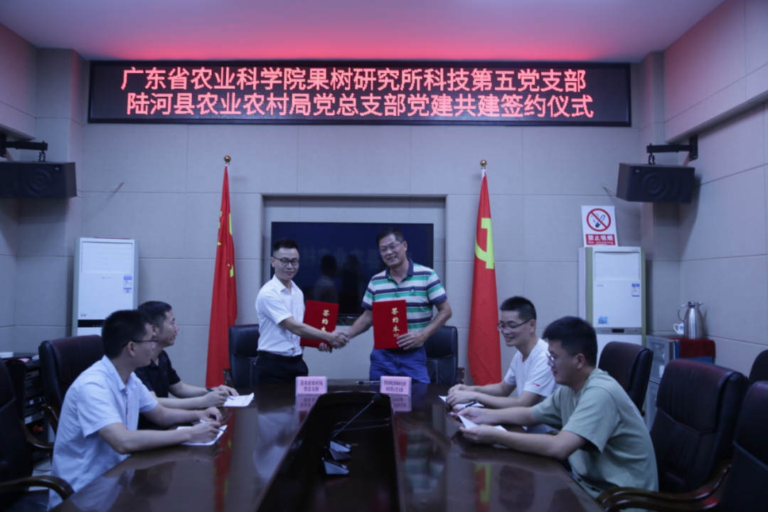 为深入贯彻党的二十大精神,落实上级关于乡村振兴工作部署,探索创新融合式党建工作模式,扎实推动党建引领乡村振兴取得新进展、实现新突破,近日,陆河县农业农村局党总支部与广东省农业科学院果树研究所科技第五党支部签订党建共建协议,以结对共建的形式,开启乡村振兴科技赋能之路。