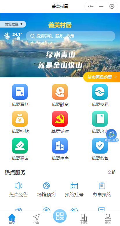 “善美村居”小程序投诉方式:使用微信搜索“善美村居”小程序,进入小程序首页点击“我要监督”——“留言反馈”