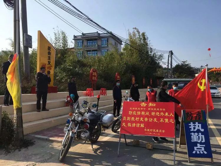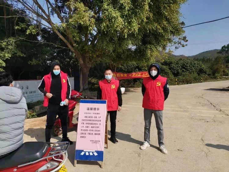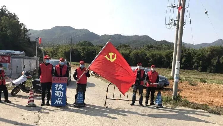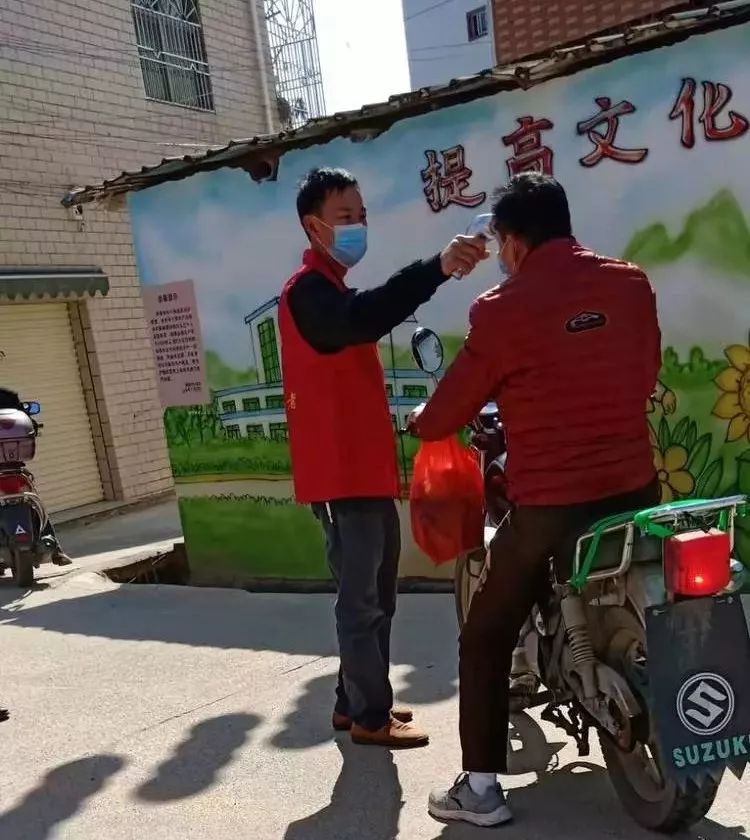 党员干部和志愿者每天在各自村口的执勤点为进出的群众测量体温,不分昼夜地在各村路口值守,投入到新冠肺炎防疫战第一线。