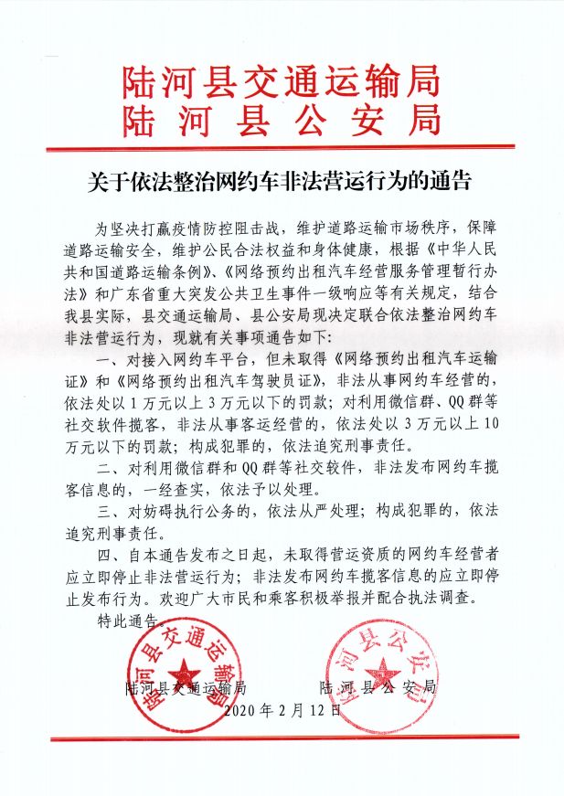 【众志成城 抗击疫情】陆河在行动⑯县交通、公安重拳出击,联合整治非法网约车