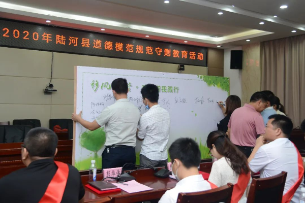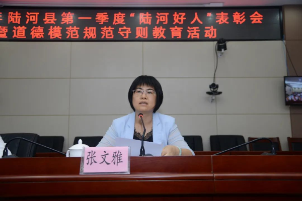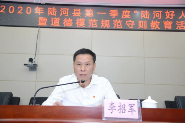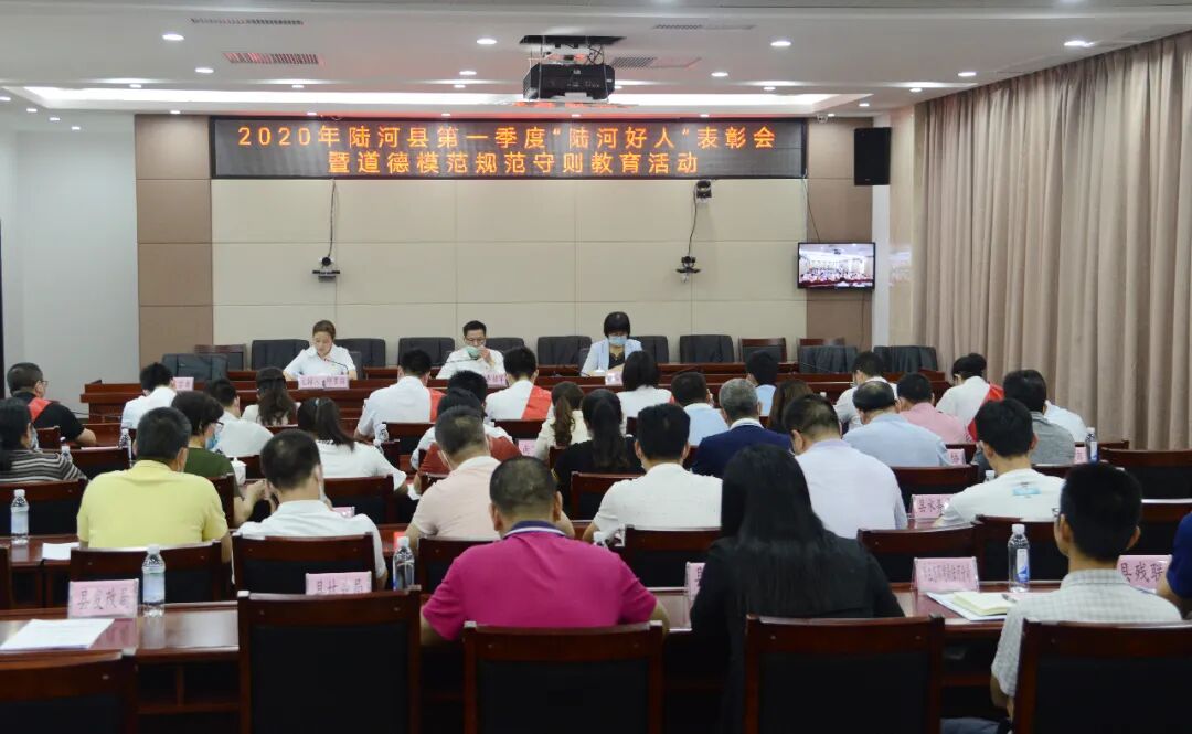 5月20日,2020年陆河县第一季度“陆河好人”表彰会暨道德模范规范守则教育活动在县政府六楼会议室召开。县委副书记、政法委书记李招军,县委常委、宣传部部长张文雅出席会议,县委宣传部副部长、县文明办主任邱雪丽同志主持会议,县文明委成员单位分管领导、各镇宣传委员,道德模范、陆河好人代表共60多人参加会议。