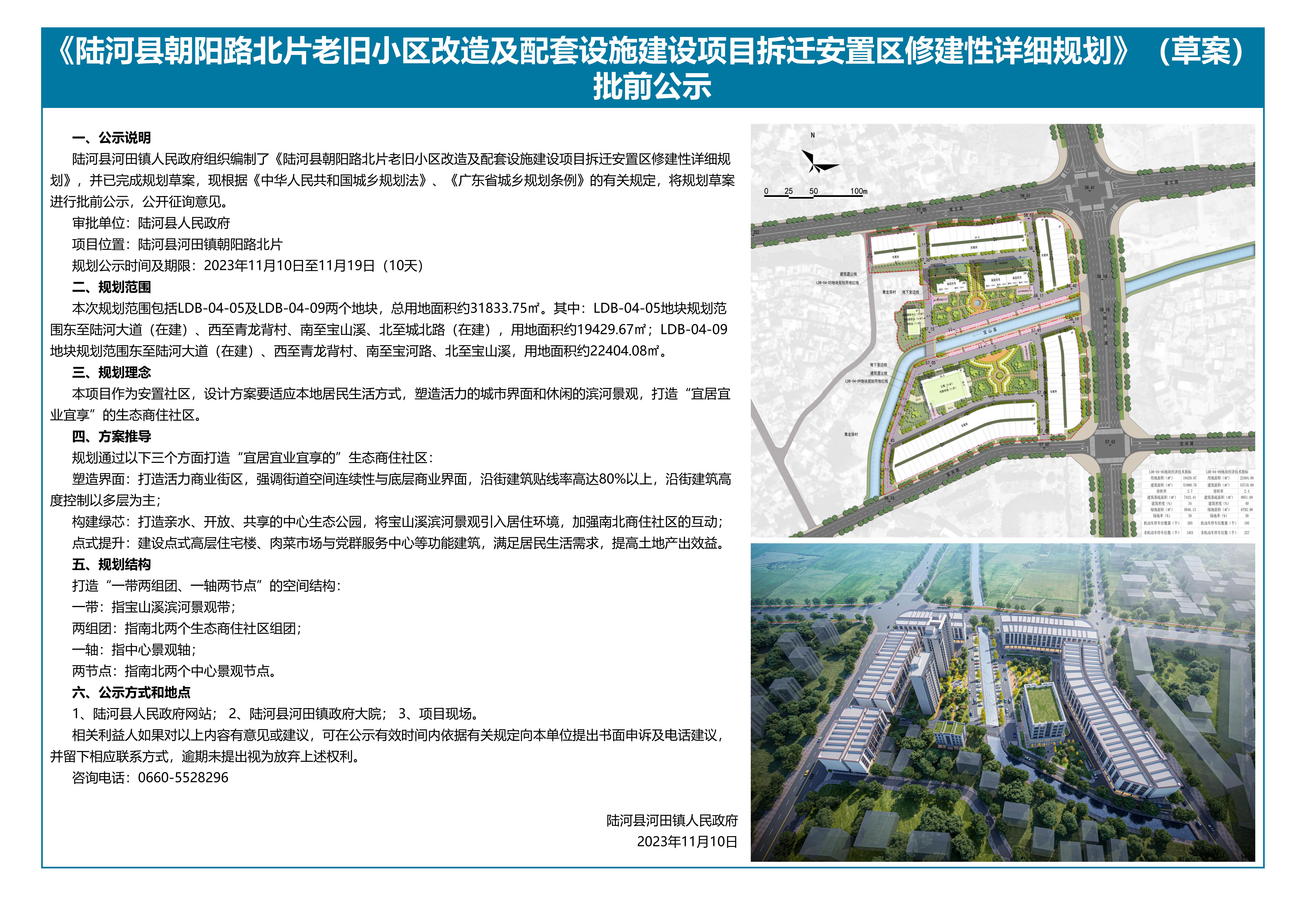 《陆河县朝阳路北片老旧小区改造及配套设施建设项目拆迁安置区修建性详细规划》(草案)批前公示