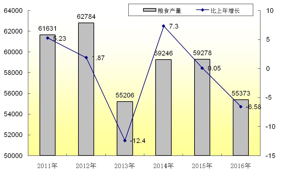 全年粮食产量55373吨,下降6.58%;油料产量3751吨,增长2.9%;蔬菜产量87835吨,增长13.85%;水果产量96804吨,增长5.3%。