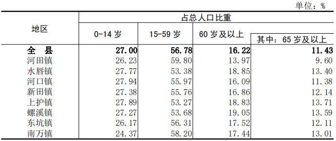 根据第七次全国人口普查结果,现将2020年11月1日零时我县8个镇人口年龄构成情况公布如下: