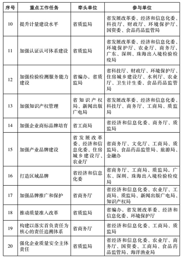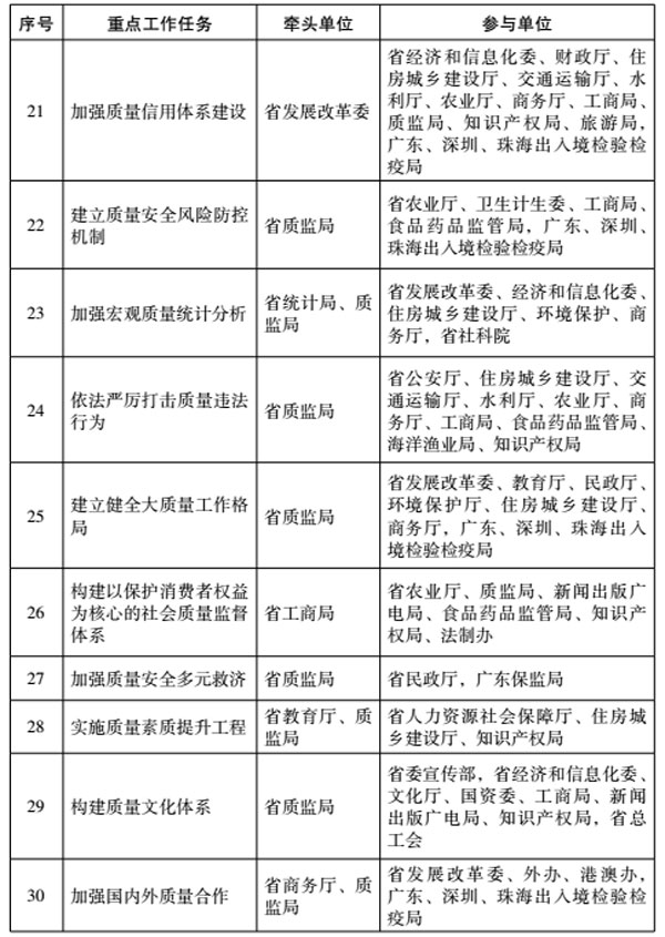 附件:实施质量强省战略重点工作任务分工表 省府办公厅 2016年11月4日 (联系人:王勇,电话:020-38835716、1582026****)