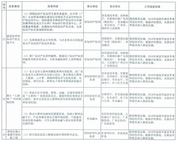 附件:广东省全面创新改革试验改革事项责任分工和进度安排表