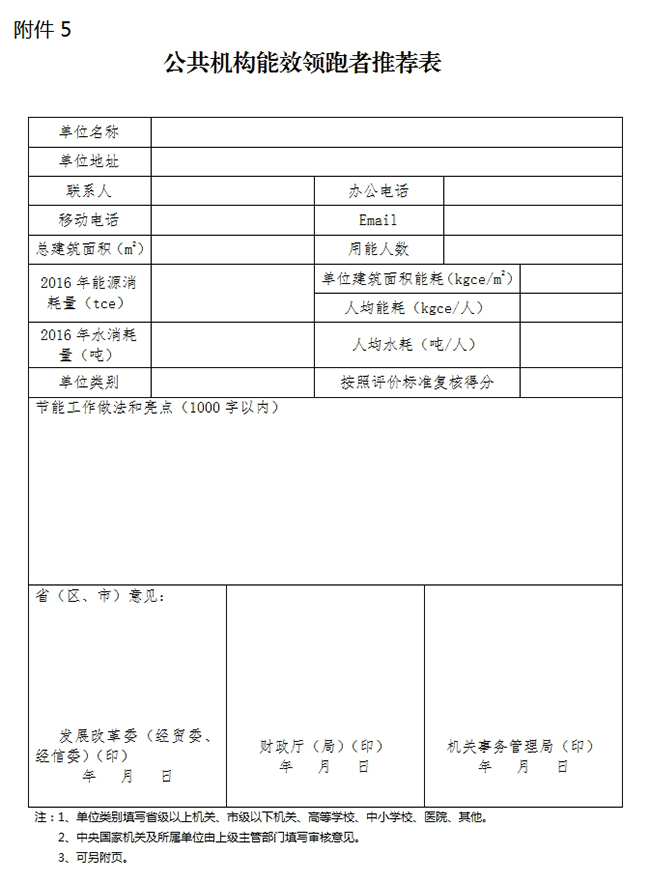 为贯彻落实《国务院关于印发“十三五”节能减排综合工作方案的通知》(国发〔2016〕74号)有关要求,切实发挥公共机构在节约能源资源方面的示范引领作用,现就节约型公共机构示范单位创建和能效领跑者遴选有关工作通知如下: