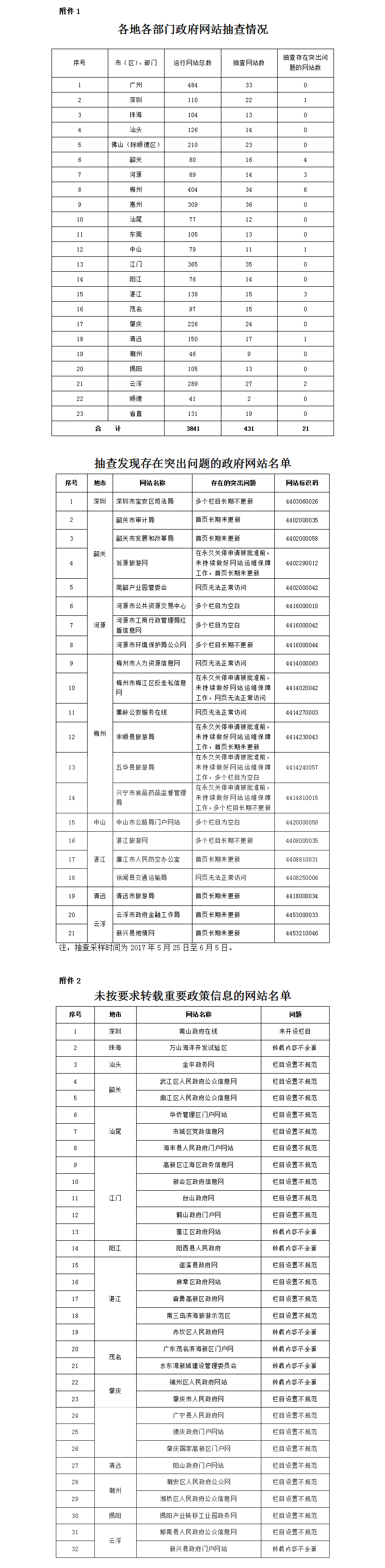 附件:1.各地各部门政府网站抽查情况及存在突出问题的政府网站名单