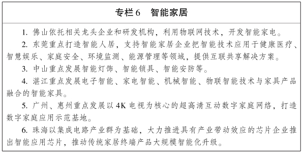 9.智能家居。推动人工智能技术与传统家电结合,实现传统家电智能化。打造智能家居行业标准化体系,实现云端接口标准化。创新智能家居服务模式,围绕家庭安全、健康医疗、智慧娱乐、环境监测、能源管理等领域,实现智能产品的互联互通,重点打造智能家电、智能照明、4K电视和智能家具等产品。推动智能安防、智能家居、智能社区有机融合,提升家居产品的个性化、智能化服务能力,构建智能家居生态体系。