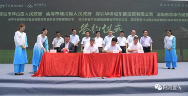 为继续践行精准扶贫、打造全域旅游、深耕“文化+旅游+城镇化”创新发展战略, 开启陆河文旅产业发展新篇章。2018年6月1日的华侨城·螺溪谷文化旅游产业精准扶贫示范项目开业仪式上,深圳市坪山区政府、汕尾市陆河县政府与深圳东部华侨城有限公司签署《产业化扶贫(现代农业产业基地)战略合作框架协议》,深圳市坪山区政府、汕尾市陆河县政府又分别与深圳华侨城东部投资有限公司(以下简称“华侨城深东集团”)签署《陆河新时代公园文化旅游综合体项目合作框架协议》、《陆河县全域旅游发展的合作框架协议》。