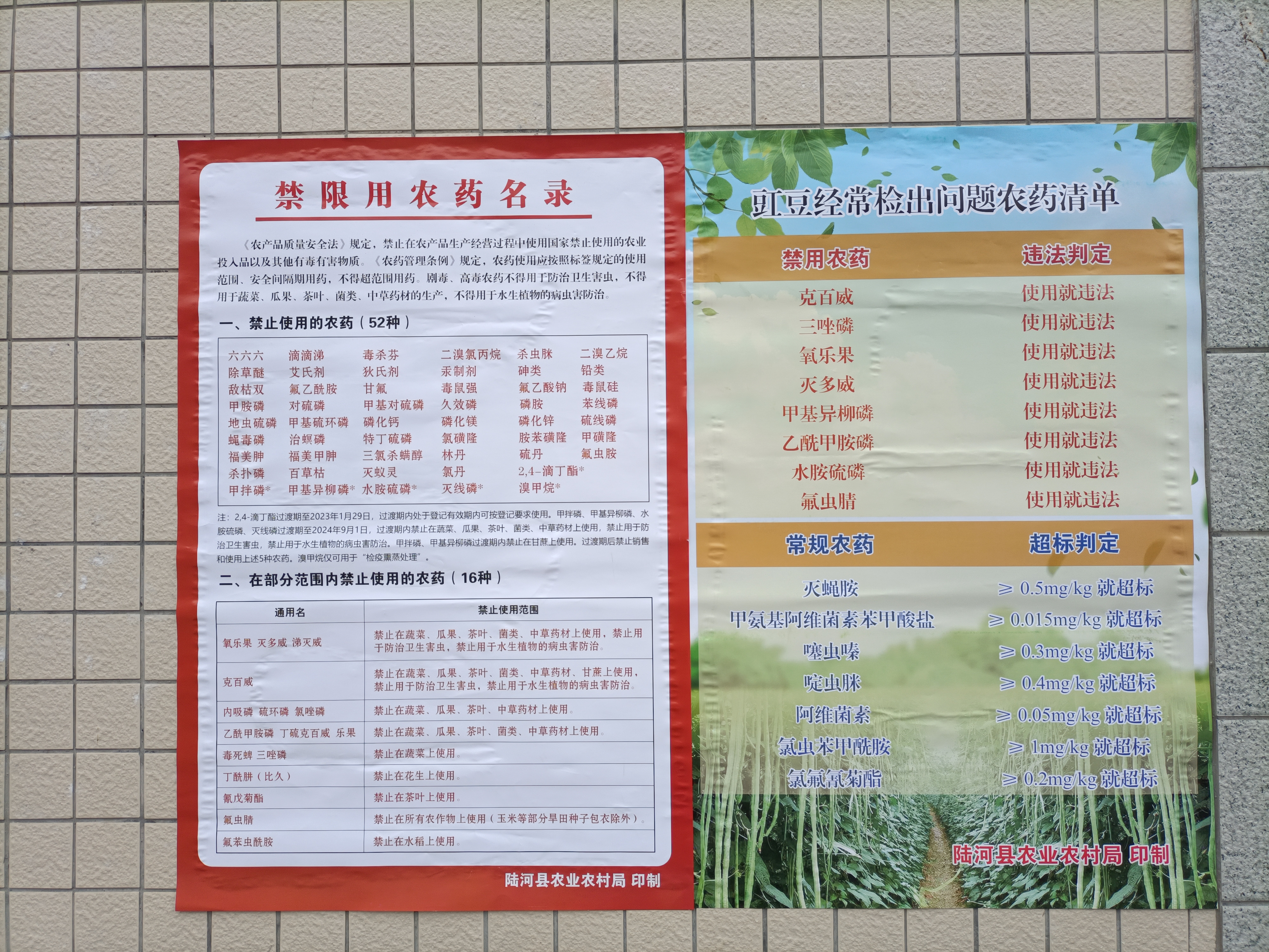 《豇豆经常检出问题农药清单》和《禁限用农药名录》张贴