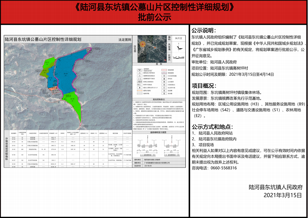 《陆河县东坑镇公墓山片区控制性详细规划》批前公示