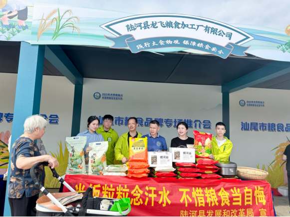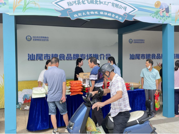 10月16日,2023年世界粮食日和全国粮食安全宣传活动在汕尾市玉台山慈云公园集中举办,我县组织志愿者及粮食应急企业积极开展宣传活动,普及粮食安全知识,增强群众的爱粮节粮意识,大力宏扬爱粮节粮传统美德。活动现场,工作人员通过悬挂宣传标语、现场讲解、发放宣传资料等方式,向过往群众普及粮食种植、质量安全、安全储粮等知识,同时开展了粮食品牌专场推介活动,陆河县龙飞粮食加工厂有限公司大力展销大米、食用油等优质粮食产品,开展品鉴试吃等系列活动,进一步提升了陆河粮食品牌影响力和关注度。