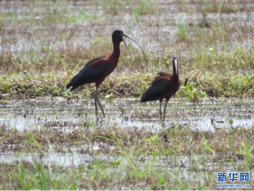 国家一级保护野生动物彩鹮在汕尾市出现。新华网发(广东省林业局供图)