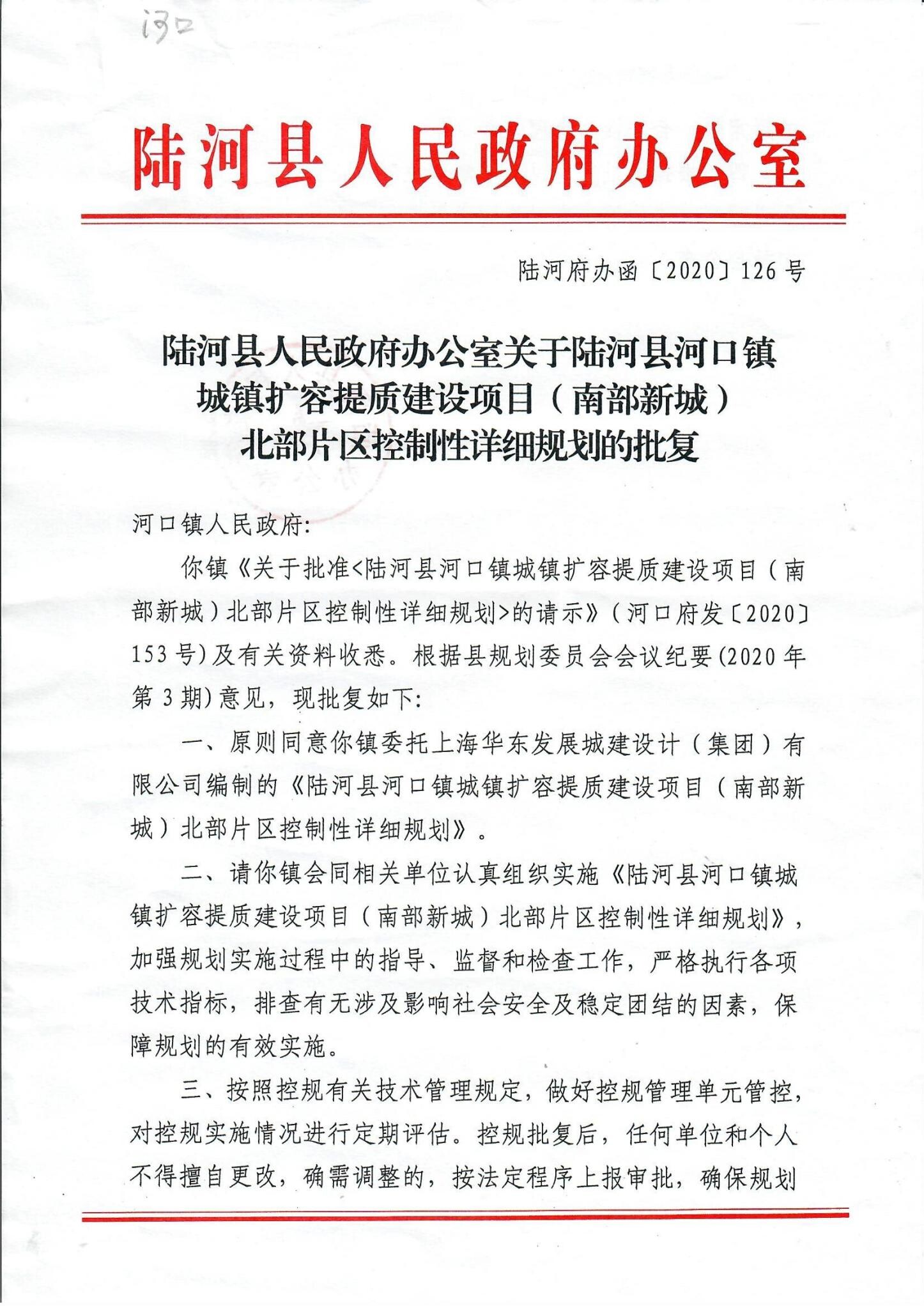 《陆河县河口镇城镇扩容提质建设项目(南部新城)北部片区控制性详细规划》批后公告