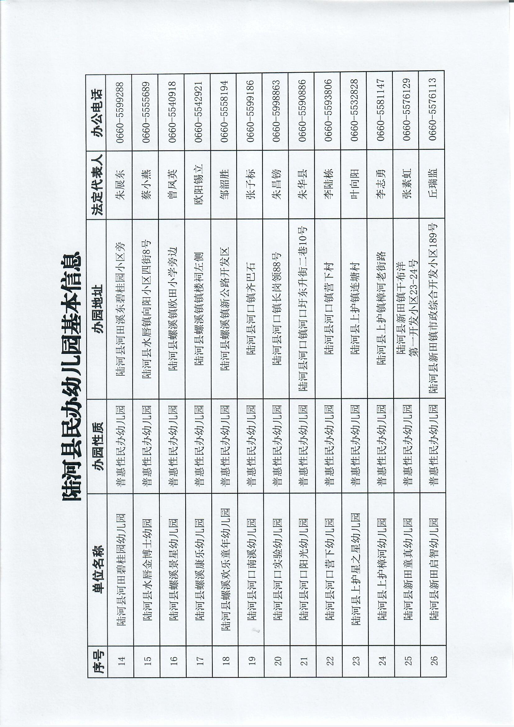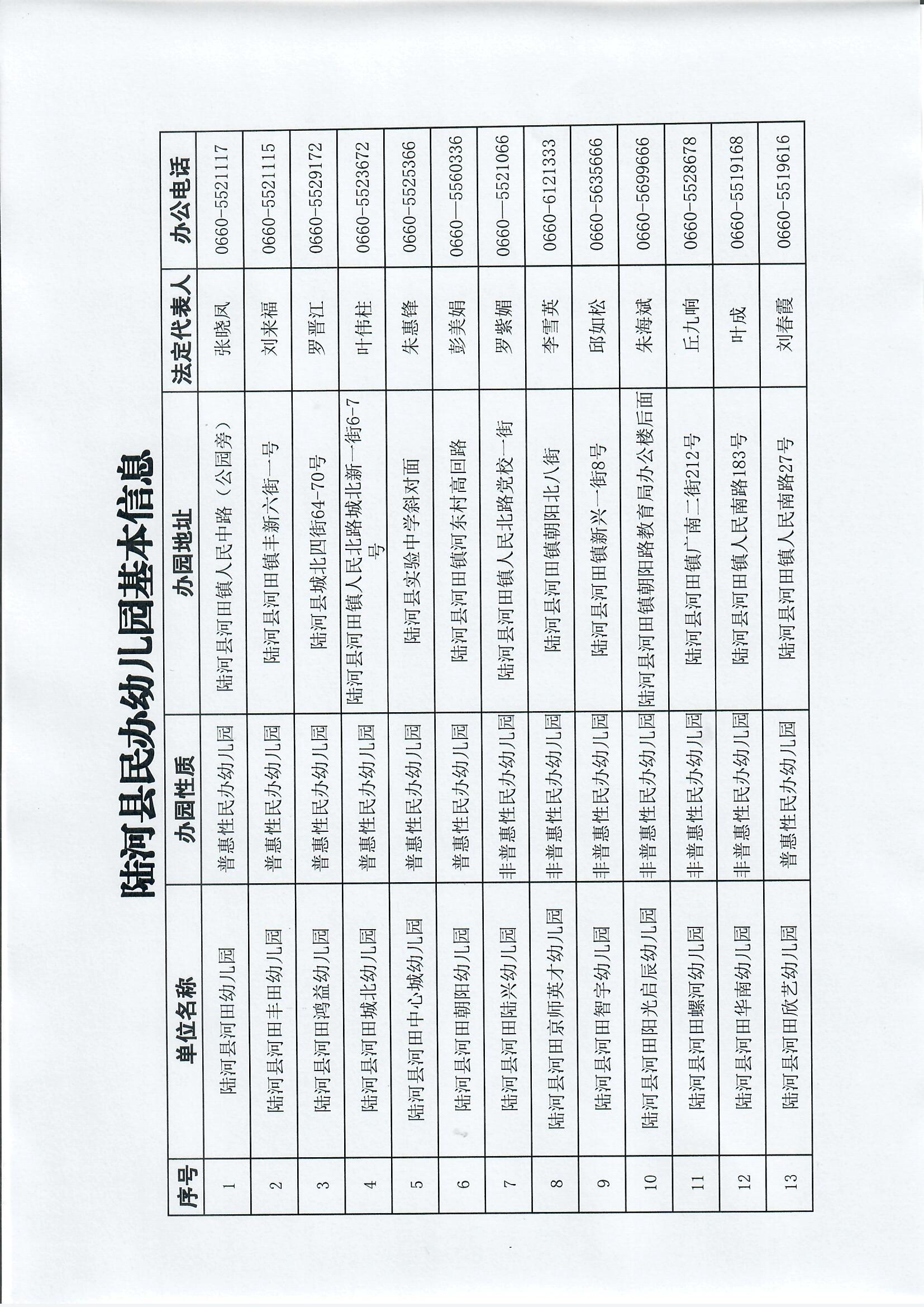 陆河县民办幼儿园基本信息