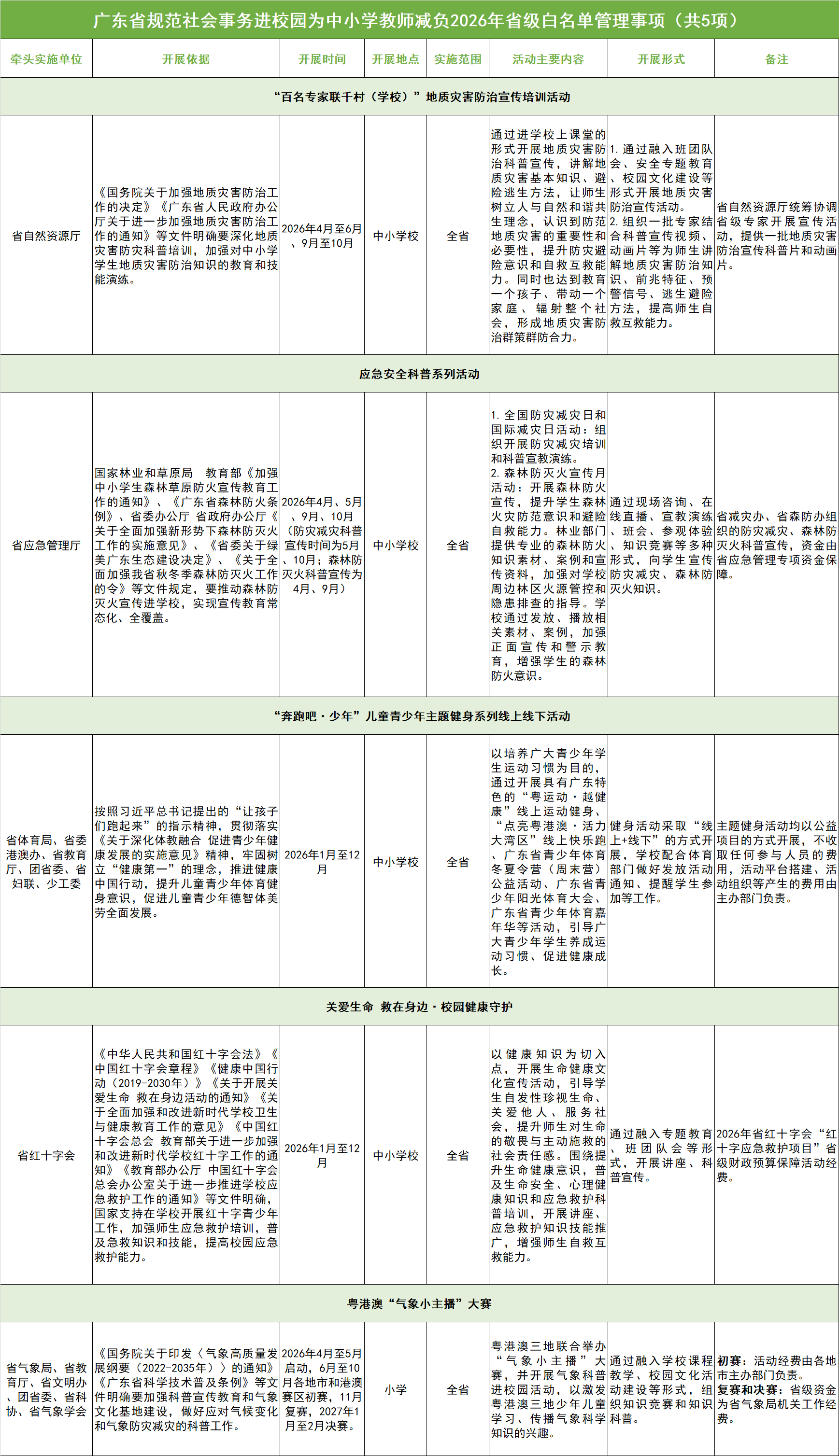 关于公布广东省规范社会事务进校园为中小学教师减负2026年省级白名单的公告