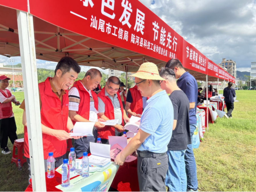 6月23日下午,县科工局联合市工信局、市商务局在陆河县青年公园开展以“绿色发展 节能降碳”及“发展绿色经济 商务护航队在行动”为主题的“全国节能宣传周和低碳日”主题宣传活动。活动现场通过悬挂横幅、摆放展板、发放宣传手册等群众喜闻乐见的形式,集中宣传绿色低碳理念,倡导全社会践行节能降碳的生产方式和生活方式。