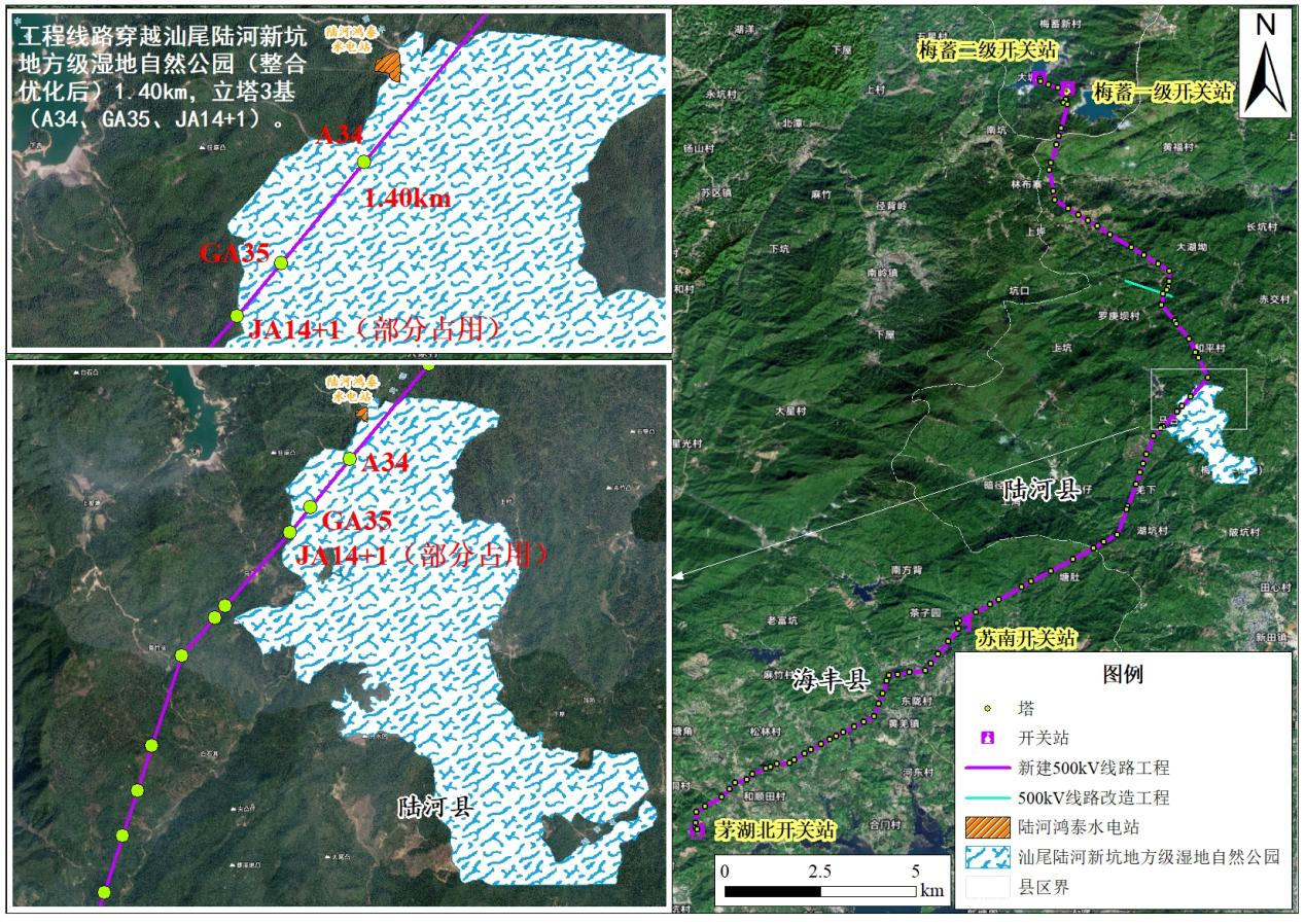 附件: 500千伏梅州蓄能二期接入系统工程与汕尾陆河新坑地方级湿地自然公园位置关系图.png