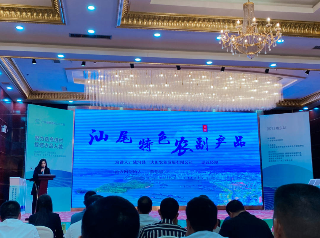 活动现场,汕农网创始人兼陆河县一夫田农业发展有限公司副总经理陈思恩代表汕尾市特色农副产品发展进行演讲介绍。