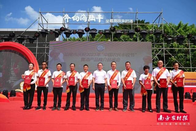 汕尾市人民政府副市长曾宏武为汕尾市十大杰出高素质农民颁奖。