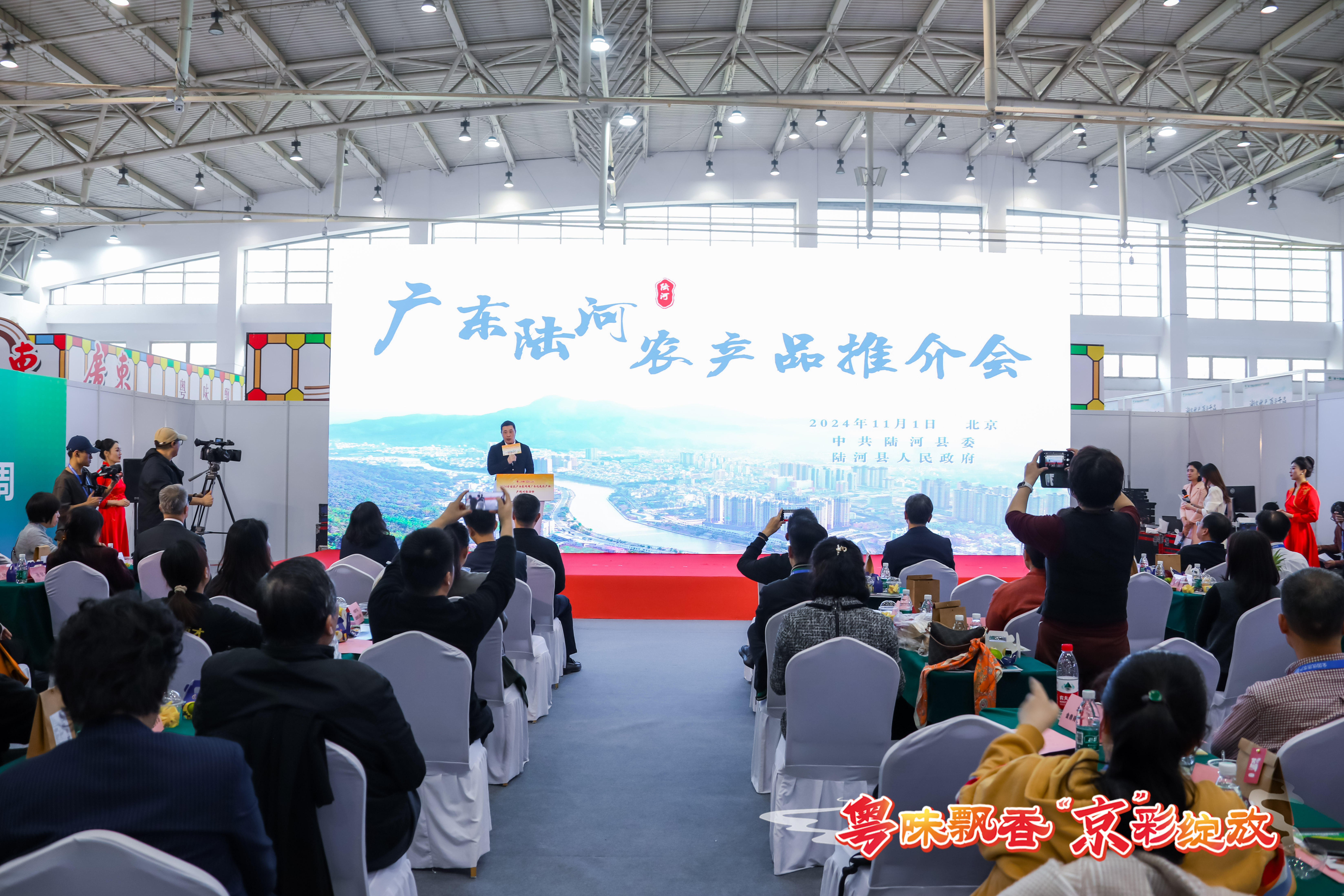 “粤味飘香,‘京’彩绽放”,11月1日下午,在第十四届全国优质展销周上,陆河县委、县政府举行“广东·陆河农产品推介会”活动,县委副书记李振坚作推介讲话。国家农展馆、省对外交流中心领导以及香港、北京等全国各地近50家采购商参加活动。