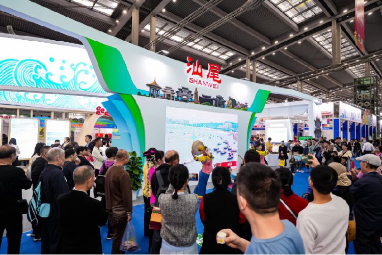上午10时,随着一阵悠扬的音效响起,一群身着鲜艳传统汕尾渔家服饰的表演者们鱼贯而出,演绎动人渔歌。不少市民被精彩的表演吸引,聚到汕尾展区前。来自广州的王先生刚在展位上购买了一盒莲花山茶叶,拎着袋子加入到了围观队伍中,“没想到逛展会还能看到这么精彩的演出,我的下一个旅游目的地就是汕尾!”